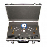 Тестер топливной системы впрыска. Позволяет диагностировать абсолютно любые топливные системы впрыска автомобилей (Европа, Россия, Азия, Америка и т.д.) и находить неисправный элемент методом измерения давления. Достоинством является высокоточный манометр, диаметром 63 мм, с ценой деления 0,1 BAR. В комплекте порядка 80 адаптеров.