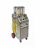 Бак из нержавеющей стали. Установка для замены тормозной жидкости с адаптерами GS-432. Все работы выполняются одним оператором. Мобильная установка для замены тормозной жидкости – после создания давления в системе, может быть отключена от компрессора и перемещена к месту проведения ремонта. Для легковых автомобилей и лёгких грузовиков в т. ч. с АБС.