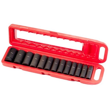 Набор удлиненных ударных головок для гайковерта 1/2” - 10-32мм. 13шт. Cr-Mo. Для слесарных, шиномонтажных постов в автосервисе и т.п. Черные. Покрытие – воронение.