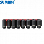Набор удлиненных ударных головок для гайковерта 1/2” - 17, 19, 21, 22, 23, 24, 27мм. Cr-Mo. Для литых дисков. Тонкостенные.