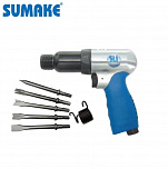 Компактный и мощный инструмент. Корпус выполнен из легкого и прочного алюминиевого сплава. Для выполнения ударных, режущих и рубящих работ или удаления заклепок, снятия слоя старого покрытия. При длине 130 мм частота ударов молотка составляет 4300 уд/мин. Рабочий ход составляет 43 мм. В комплект поставки входят 2 стальных зубила.