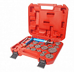 Для замены тормозных колодок. Подходит для большинства автомобилей. Способ применения: вращая рукоять приспособления, задвинуть поршень тормозного цилиндра для замены тормозных колодок. 15 предметов.