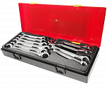 Набор ключей рожково-накидных в прочном презентабельном боксе (14 предметов). В комплекте: ключ рожково-накидной с трещоткой: 8, 10, 11, 12, 13, 14, 15, 16, 17, 18, 19 мм. - 11 шт и адаптеры 1/4", 3/8", 1/2" - 3 шт.