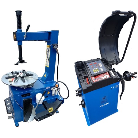 Комплект из шиномонтажного станка TS-24. Полуавтоматический. Квадратный стол. Для дисков:11÷24”. В комплекте: пистолет с манометром для подкачки шин + монтажка + пластиковые накладки на зажимные кулачки + регулятор давления с влагоотделителем и манометром + TS-450 Балансировочный станок. Полуавтомат. Большие диски до 24" - выше заработок. Отказов нет. Поставляем с 2018г. Автозапуск опусканием кожуха. Для колес легковых автомобилей, мотоциклов, «Газелей», «Спринтеров» и т.п. с диаметром диска с резиной до 760 мм. Вес колеса с диском – 65кг. В комплекте: кожух с автозапуском + клещи + кронциркуль + быстрозажимная гайка + набор конусов. В комплекте также присутствует: компрессор производительностью 360 л/мин + низкий подкатной домкрат г/п 3т. + пневмогайковерт, 1/2", 745Нм + шланг кислородный 9мм 20 Атм. Длина 10м.