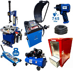 Комплект: шиномонтажный станок TS-21 для дисков: внешний 11÷20” + пистолет с манометром для подкачки шин + монтажка + пластиковые накладки на зажимные кулачки + регулятор давления с влагоотделителем и манометром. + TS-500 балансировочный станок с автозапуском, для колес легковых автомобилей и легких грузовиков, диаметр диска с резиной до 760 мм. размеры диска: ширина 3"–9” (76-228 мм), диаметр диска 10"–21” (254-533 мм). + кожух защитный + клещи + кронциркуль + быстрозажимная гайка + набор конусов + подкатной домкрат г/п 3,0т. 130-465мм. + ударный пневмогайковерт 1/2" крутящий момент 745Нм + шланг кислородный 9мм 20Атм. 10м