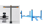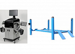 Комплект четырехстоечный подъемник для сход-развала ВСЕХ авто г/п.-4т. с ручной траверсой. Гарантия 2года. В комплекте: анкерные болты 16шт. + противооткатные ограничители 2шт. + противооткатные упоры 2шт. Для любых стендов сход-развал. ВАЖНО!!! ДЛИНА ПЛАТФОРМЫ - 4130мм. — это позволяет прокатывать авто на подъёмнике. Подъём 1850мм, Между колоннами 2775 мм. Усиленный — 960кг металла. + T 7202 TAB Стенд сход-развал 3D. 2 неподвижные видеокамеры. Напольный. Серия Basic. Для работы на яме или подъемнике. Высокая точность и скорость работы-40 кадров в секунду. База данных 65 000 авто.