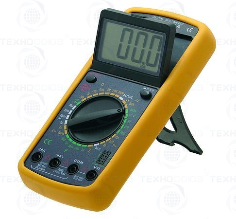 Мультиметр предназначен для измерения тока, напряжения, сопротивления, параметров диодов и транзисторов, а также частоты и температуры.