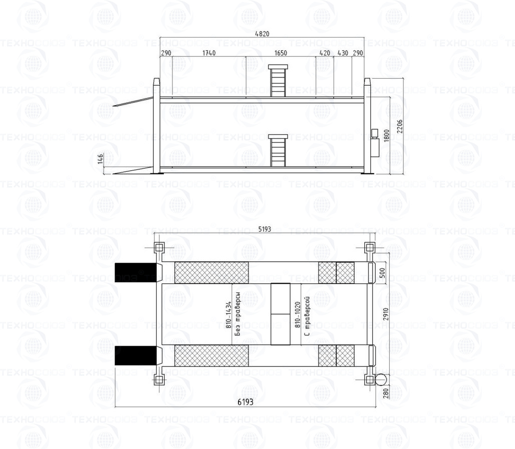 Длина трапов 4850мм, что позволяет регулировать развал-схождение на автомобилях с базой 1950-3900 мм. МБ СПРИНТЕР с базой 4025мм – только передняя ось. Расстояние между стойками – 2910мм. Производители оборудования для сход-развала 3D рекомендуют – минимально 2710мм.