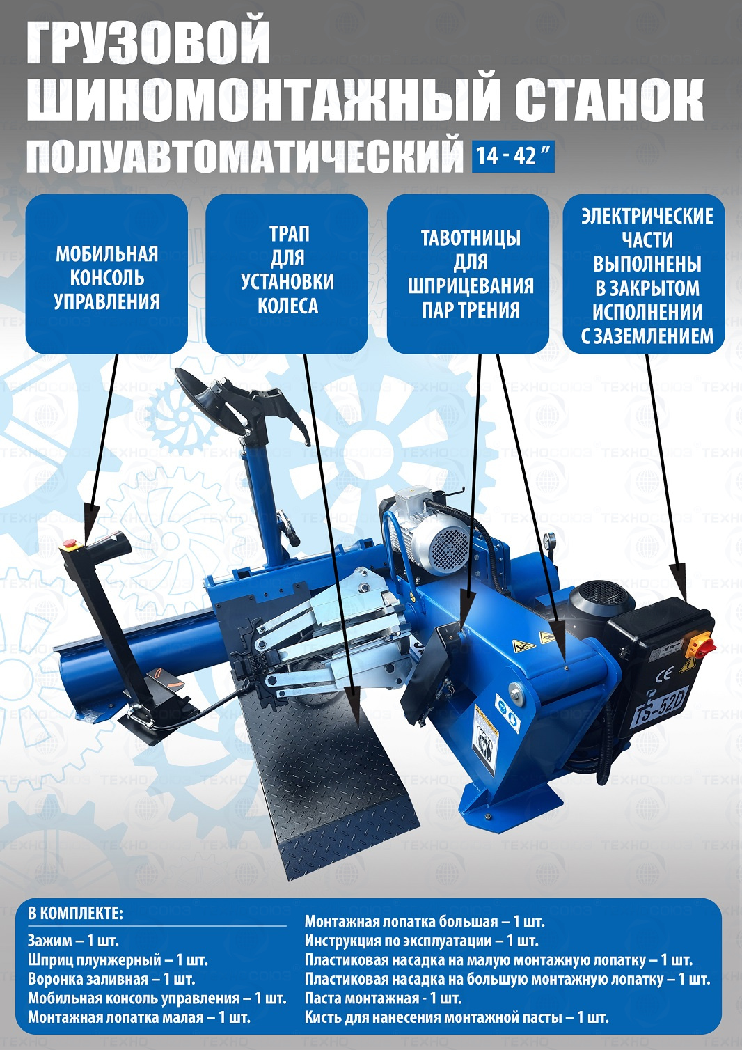 Комплект TS-52D Шиномонтажный станок 14-42"+ЛС-32 MAXI P Балансировочный станок грузовой до 30"