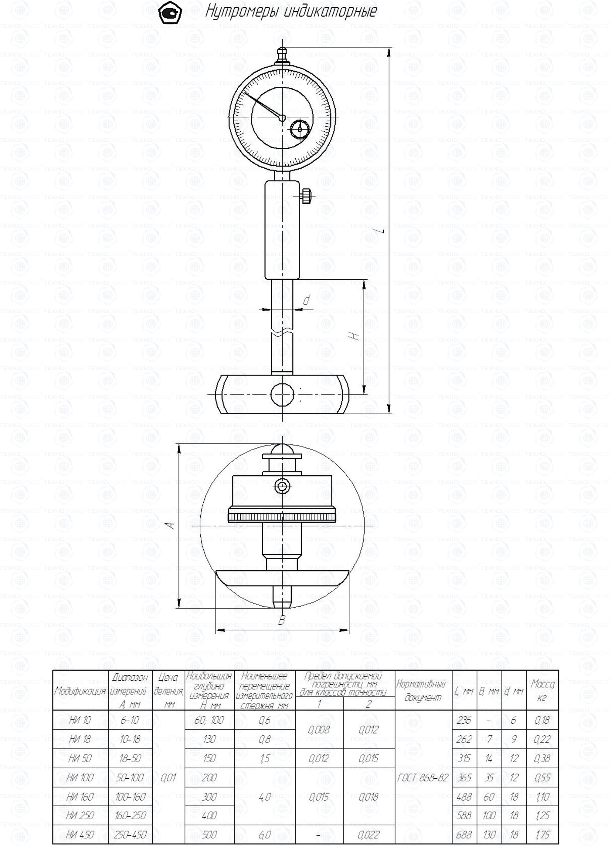 Нутромер индикаторный НИ-250 кл.2