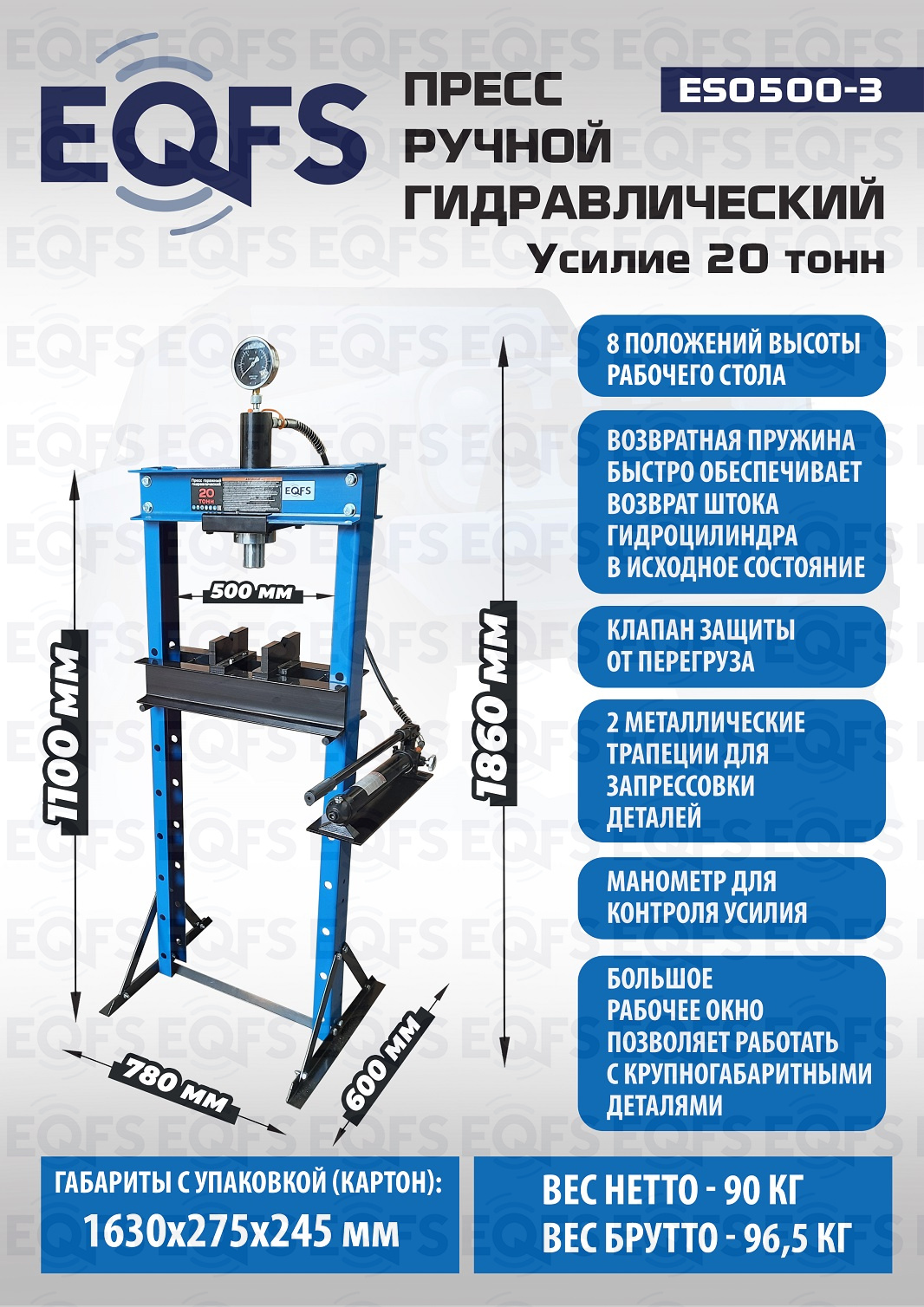 Пресс гидравлический ручной, 20 тонн, ES0500-3