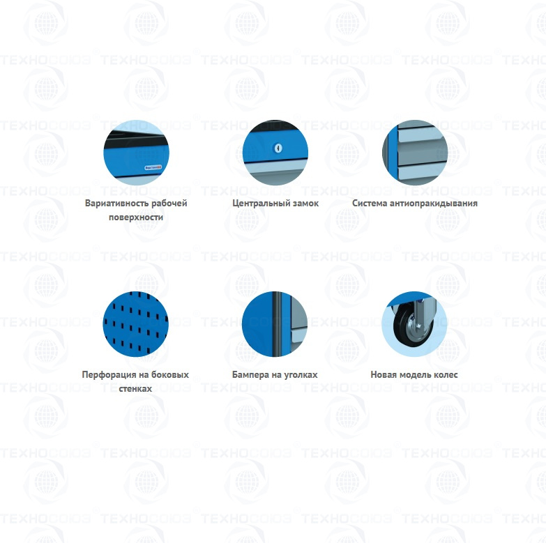 Тележка оснащена системой антиопрокидывания новой конструкции, которая блокирует открывание ящиков, если один из них уже выдвинут. Это препятствует смещению центра тяжести и предотвращает опрокидывание тележки.
