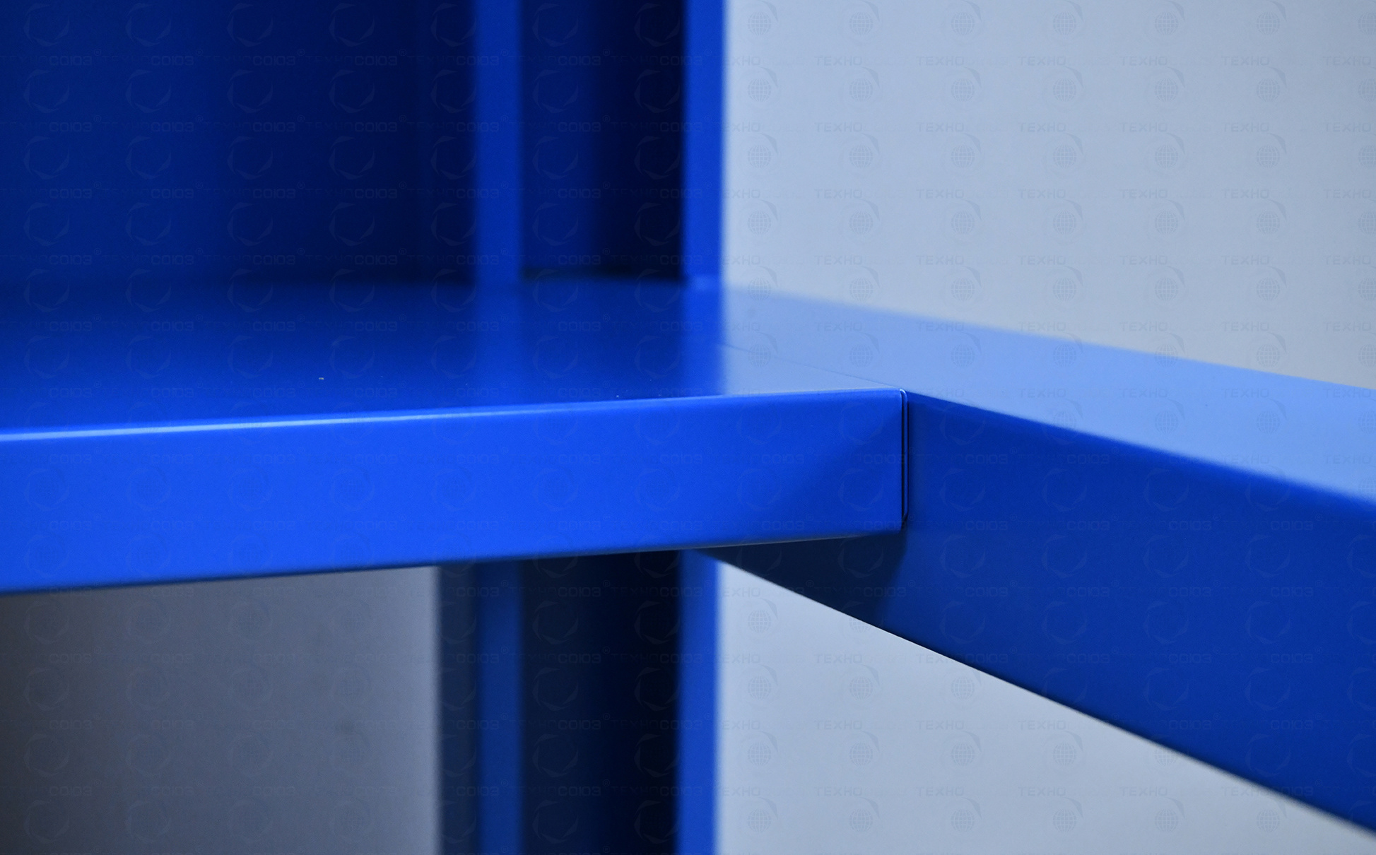 Опорные элементы выполнены сварными из холоднокатаной стали. Верстак комплектуется полкой-стенкой, расположенной под столешницей для удобного размещения габаритного инструмента и оснастки. Все металлические элементы покрыты полиэфирной порошковой краской, обеспечивающей хорошую износостойкость покрытия и невосприимчивость его к моющим средствам и смазочным веществам. Цвет и текстура покрытия корпуса тумб, опор, полки-стенки, экранов и комплектов освещения RAL 5015, гладкая, полуматовая. Цвет и текстура покрытия ящиков и дверок верстака, кронштейнов экранов и косынок RAL 7037, гладкая, глянцевая. Цвет и текстура покрытия накладок ручек ящиков и дверок RAL 9006, гладкая, глянцевая.
